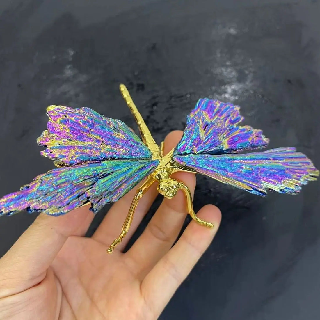 75-90G Natural Black Tourmaline Electroplating Dragonfly Spar Crafts Ornaments Color Plating Crystal Butterfly Home Decoration