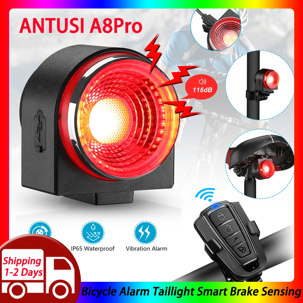 ANTUSI A8pro Bike Anti-theft Alarm Lock Auto Brake Cycling Taillight Remote Control Waterproof Bicycle Rear Light Wireless Bell
