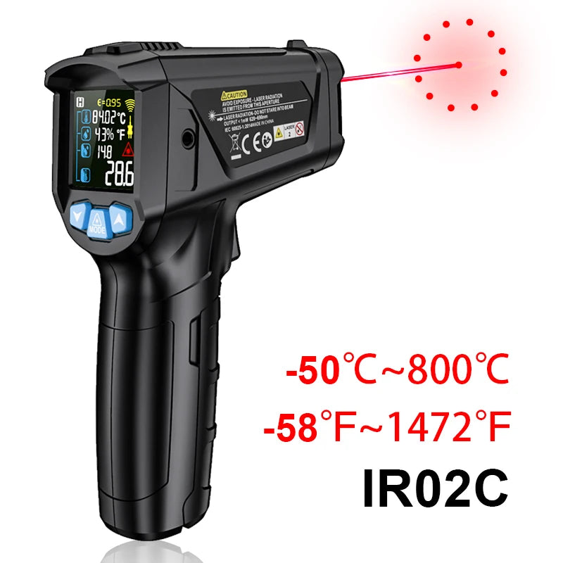 Digital Infrared Thermometer Kitchen High Temperature Meter Gun Double Laser Pyrometer IR02 Heat Meter Outdoor Food Thermometers