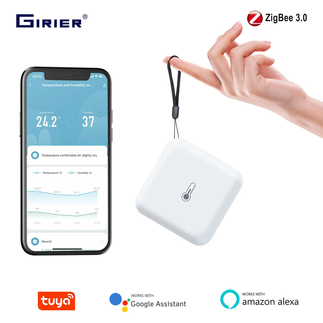 GIRIER Tuya ZigBee Temperature Humidity Sensor Smart Hygrometer Indoor Thermometer Works with Alexa/Hey Google/Home Assistant