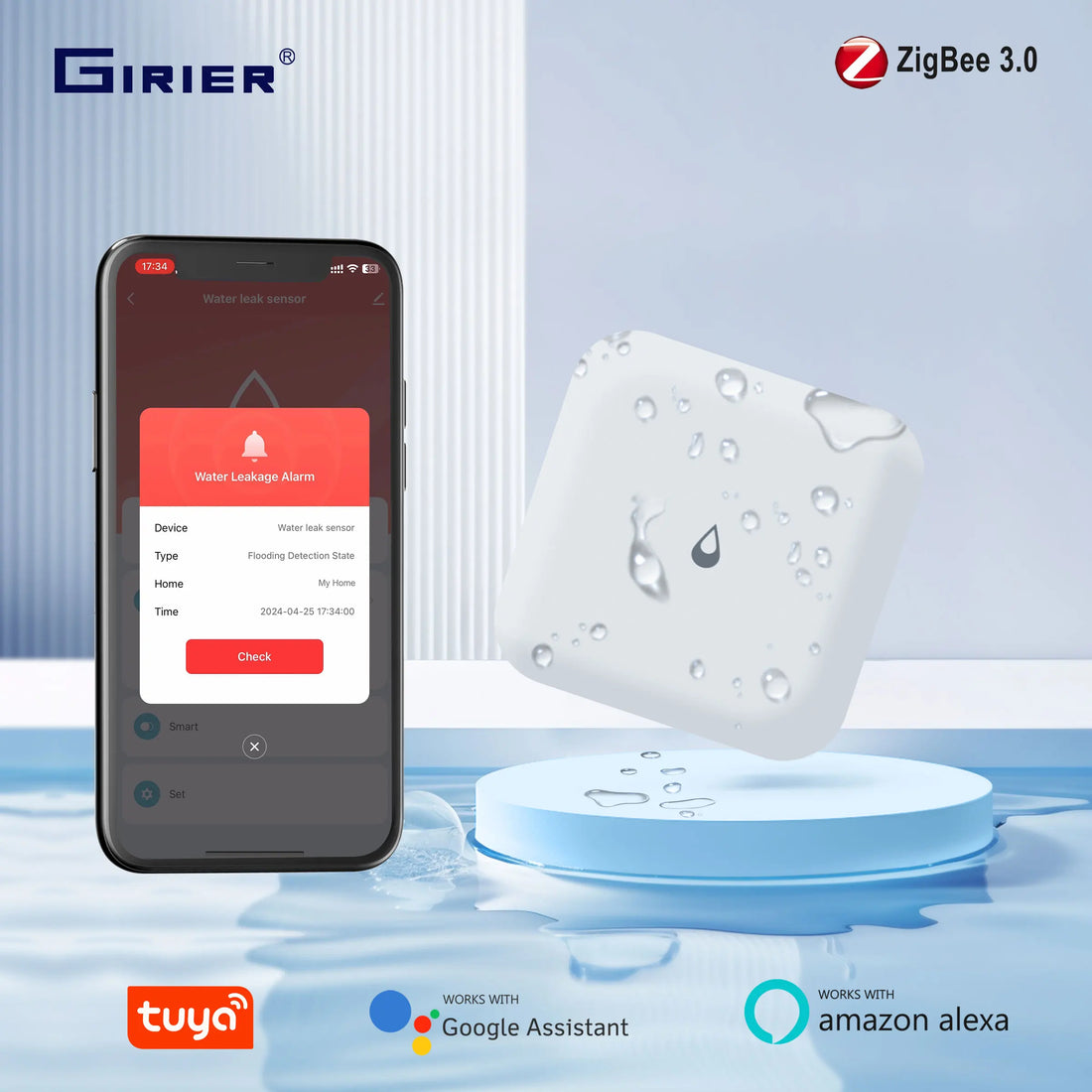 GIRIER Tuya ZigBee Water Leak Sensor Smart Leakage Detector Alarm for Smart Home Security IP66 Waterproof Support Home Assistant