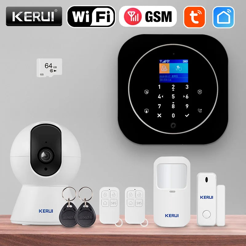 KERUI Home Security Protection WIFI GSM Alarm System Kit W202 Tuya Smart Support Alexa with Door Opening Sensor Motion Detector