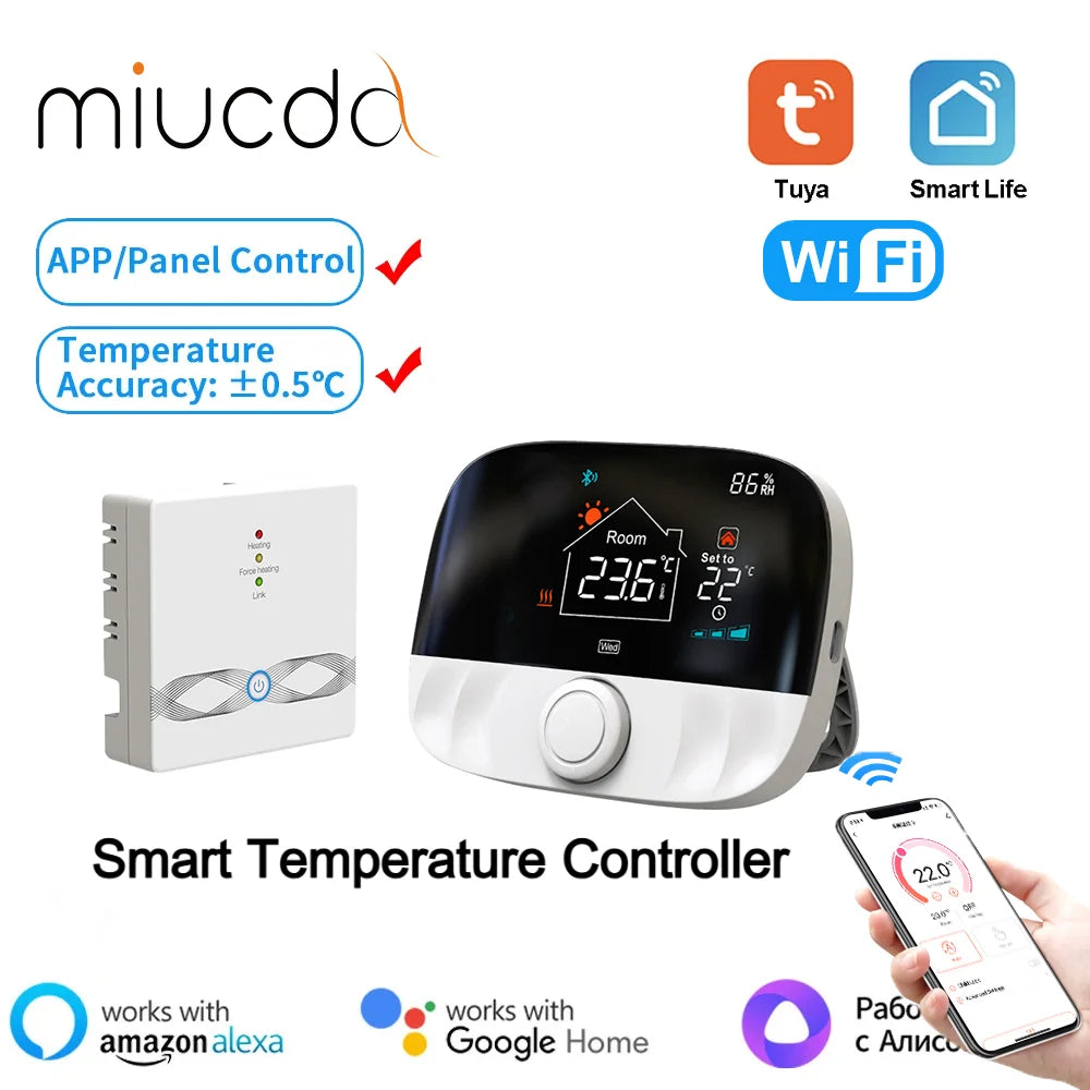 MIUCDA Tuya Smart Home WiFi Thermostat,RF433 Wireless Floor Heating Water Gas Boiler Smart Living Temperature Controller