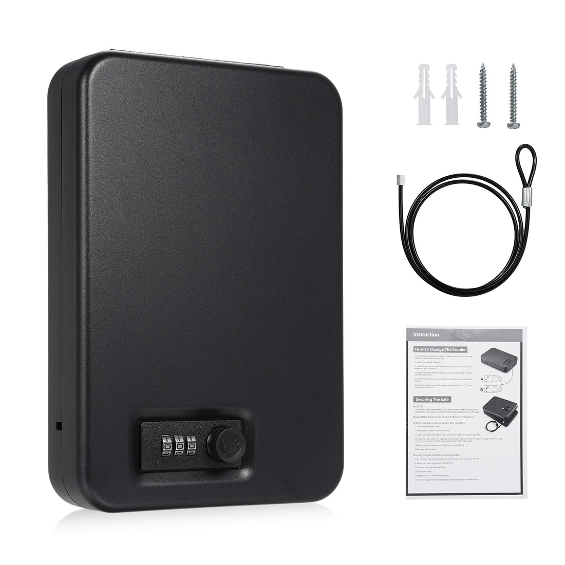 Small Safe Box Portable Travel Lock Storage Cabinet 3-digit Password Case with Security 3Ft Steel Cable for Passport Jelwery