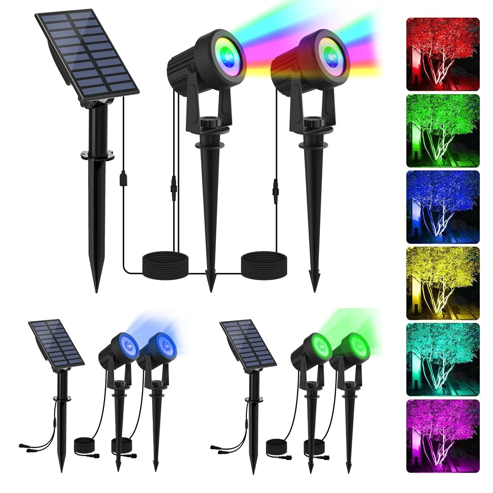 RGB Solar Spotlights for Tree Landscape Color Changing Waterproof Garden Lights Christmas Halloween Outdoor Decor Solar Lamp