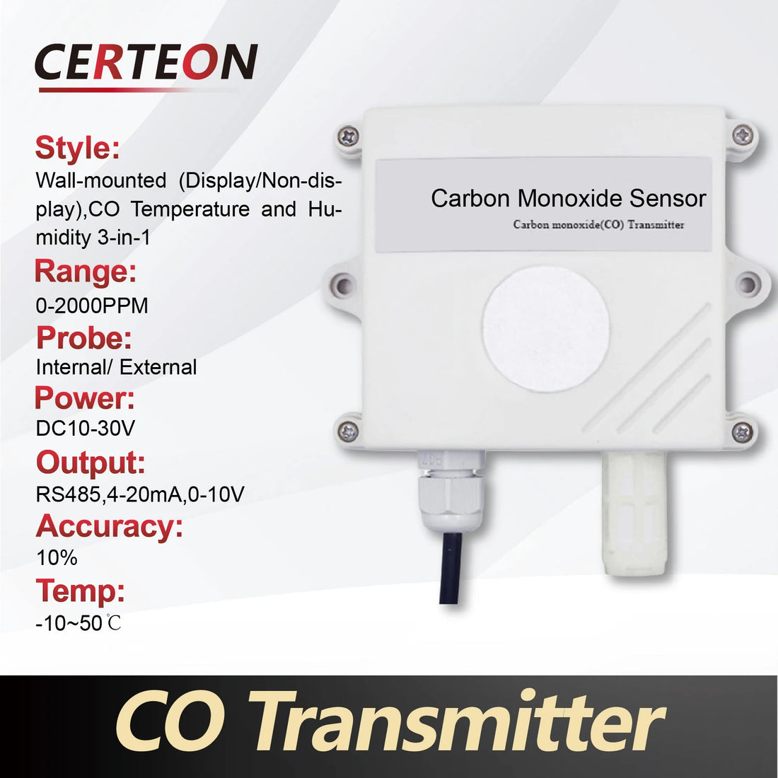 Wall-mounted Carbon Monoxide Sensor CO Gas Detector Transmitter RS485 4-20mA Output Industrial CO Monitor