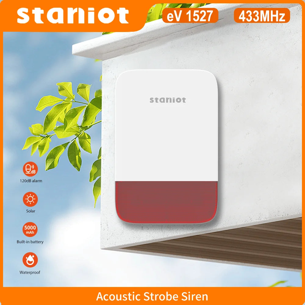 Staniot Wireless Strobe Siren 120dB High Decibel Indoor/Outdoor Waterproof Support Solar Panel Charge Built-in 5000mAh Battery