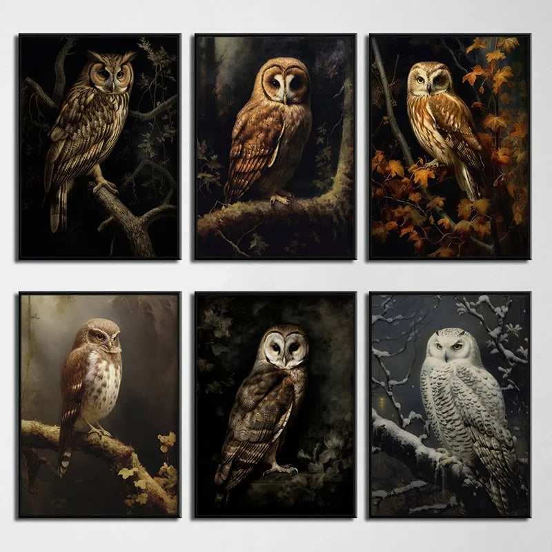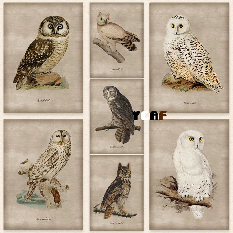 Vintage Owl Paintings Poster Canvas Printing Retro Fine Art Owls Wall Art Decor Home Room Owls Wall Decoration Art Prints Decor