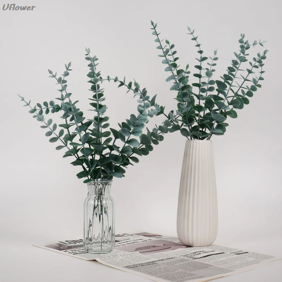 15PCS Artificial Eucalyptus Leaves Greenery Stems with Frost for Home Party Wedding Outdoor Garden Decoration Vase Arrangements
