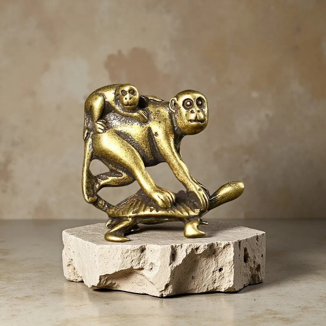 Antique Bronze Turtle Crarrying Monkeys Miniatures Figurines Desk Ornaments Decorations Accesorries Copper Funny Children Gifts