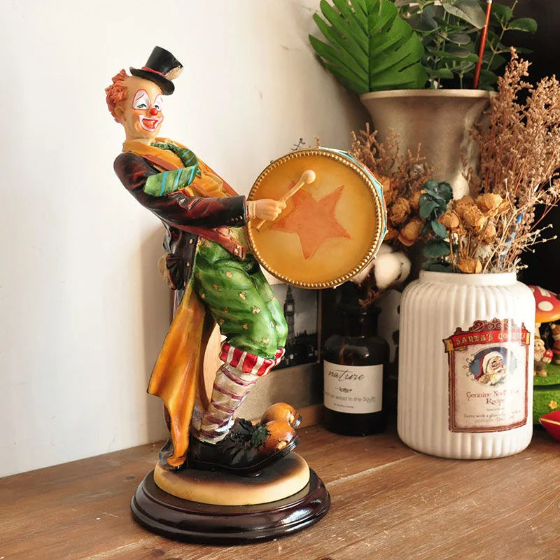 Vintage Handmade Painting Performance Clown Figurine Resin Ornaments Antique Collection Crafts Home Study Room Statue Decoration