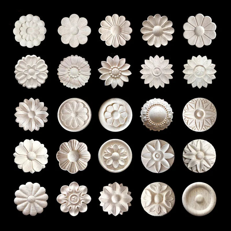 Wood Floral Appliques for Furniture Antique Onlays Moulding Home Decor Wood Carving Decoration Wall Wood Decal Vintage Figurines