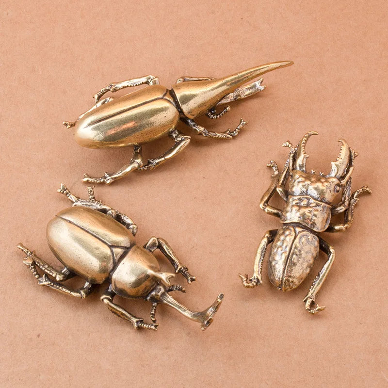 Retro Brass Beetles Figurines Unicorn Beetle Ornament Simulation Insect Tea Pets Desk Decorations Collectibles Gifts