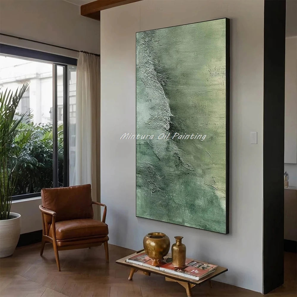 Mintura,Handmade Dark Green Textured Seascape Oil Painting on Canvas,New Design Wall Art Picture for Living Room Home Decoration