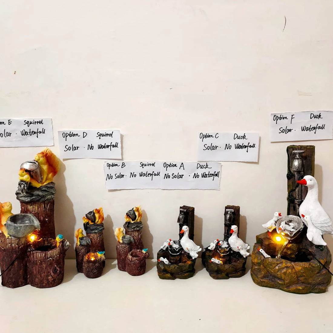 D2 Duck Squirrel Solar Power Resin Patio Fountain Garden Design With Led Light Garden Decoration Outdoor Simulation Decoration