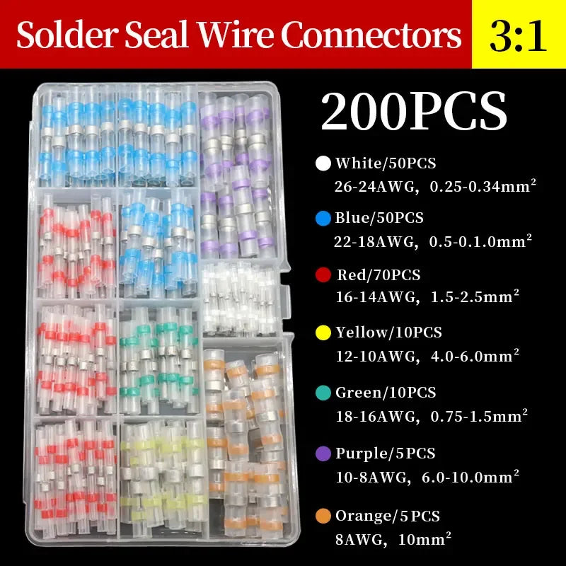 10 ~ 500pcs Solder Seal Wire Connectors Kit Heat Shrink Butt Crimp Terminals Waterproof Electrical Cable Splice Connector