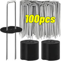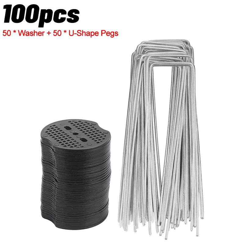 100/10pcs Metal Garden Stakes U-Shape Landscape Staple Ground Nail Fence Film Tents Securing Pegs Sod Pins Gardening Tools