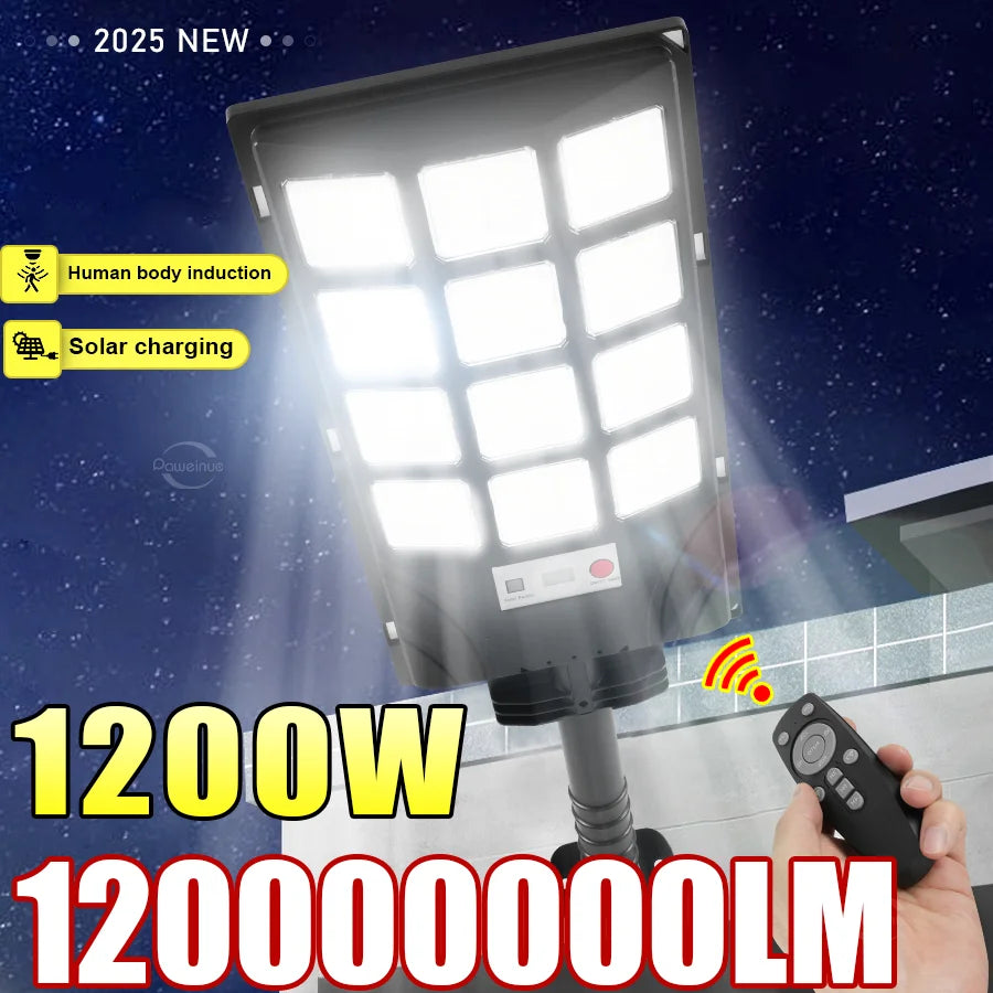 1200W Solar Light Outdoor Integrated Super Bright Motion Sensor Strong Power Sunlight Waterproof Garden Wall Street Lighting
