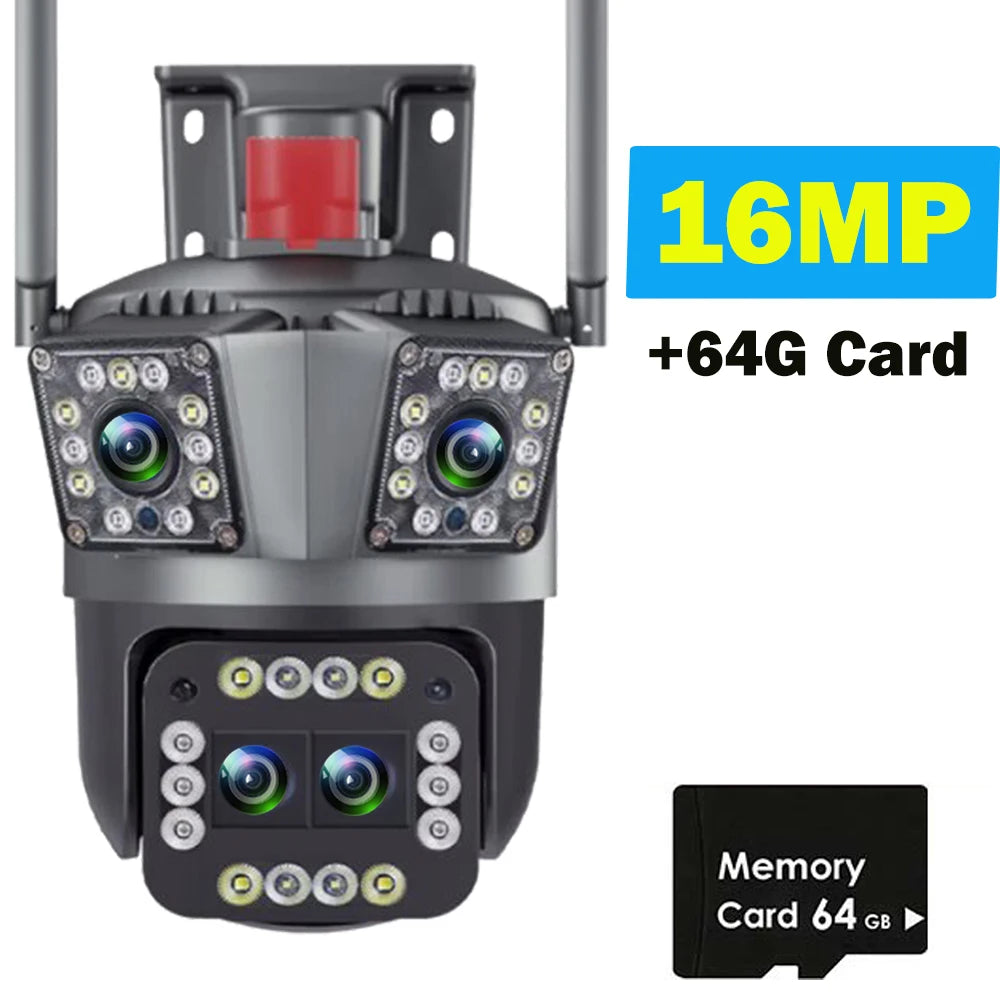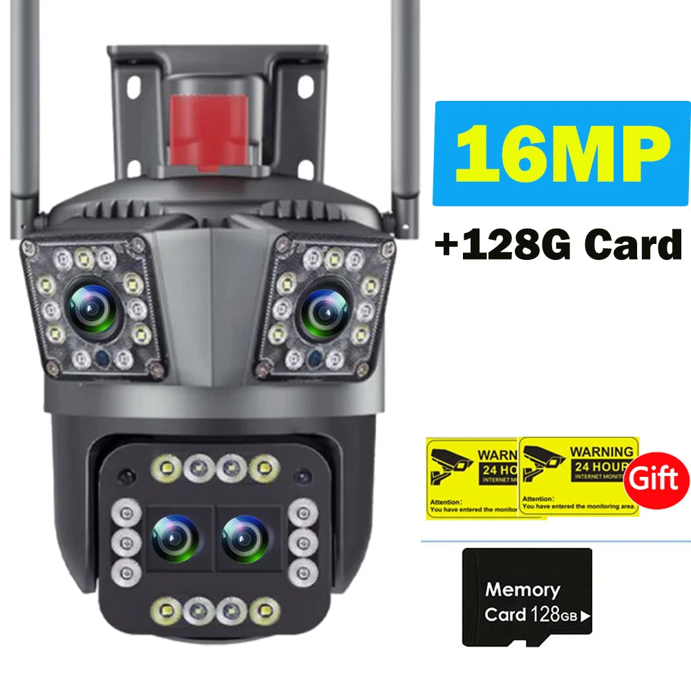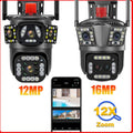 16MP 8K WiFi Camera Outdoor 12X Zoom 360° Surveillance Three Screen CCTV Security Protection 6K 12MP Video Street Camera