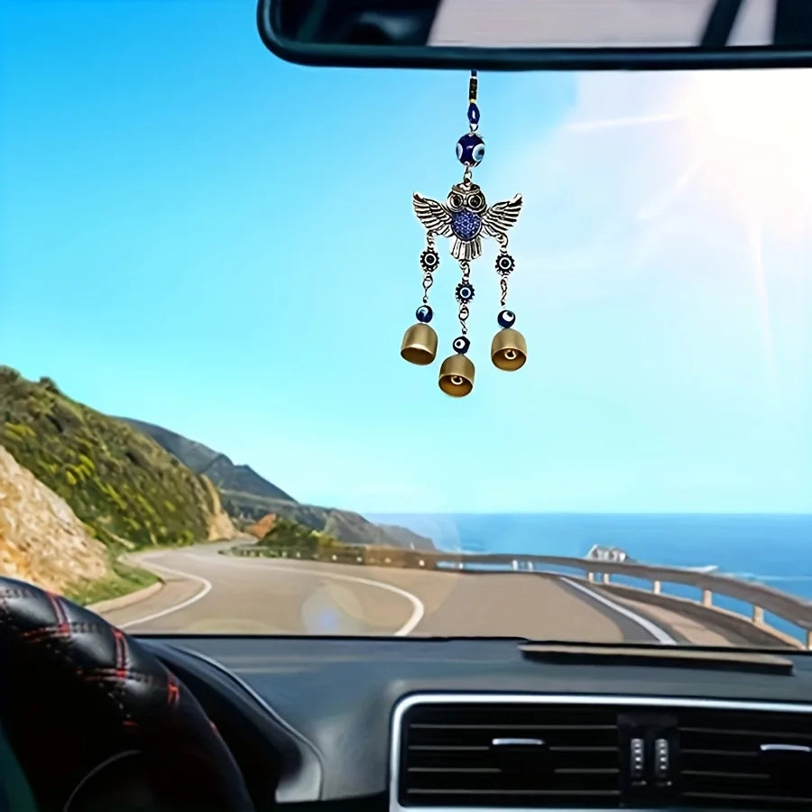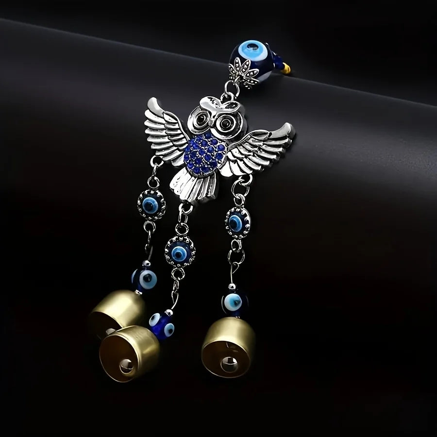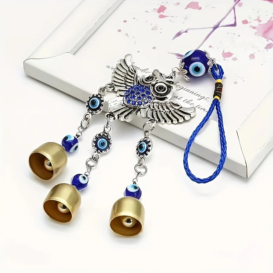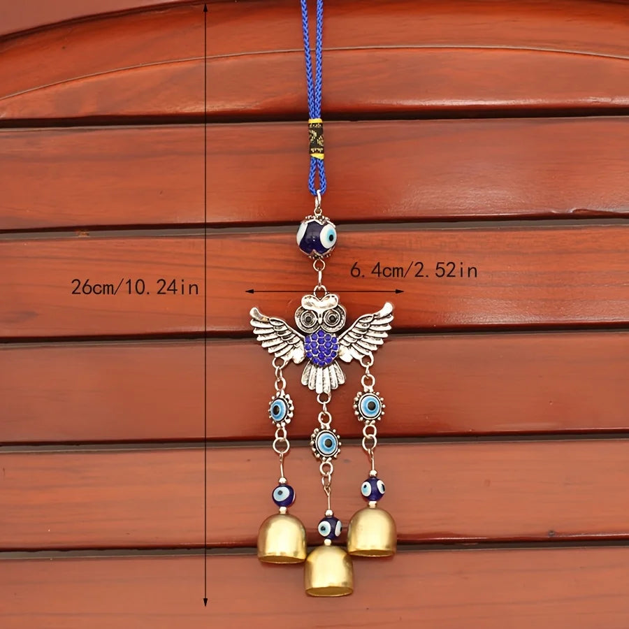 1pc blue eye spread wing owl bell wind chime for outdoor courtyard corridor window lattice wall car decoration birthday gift