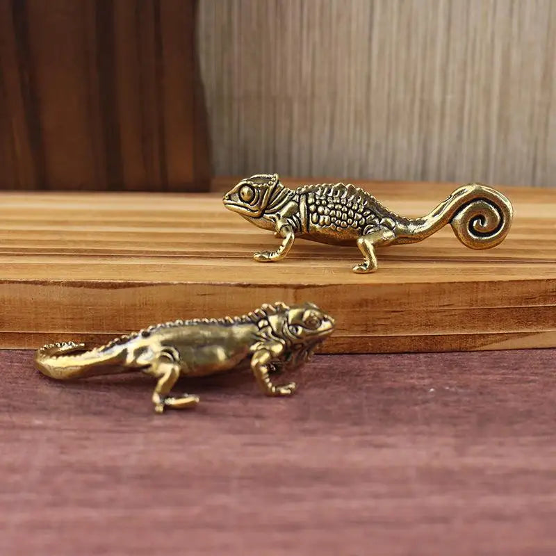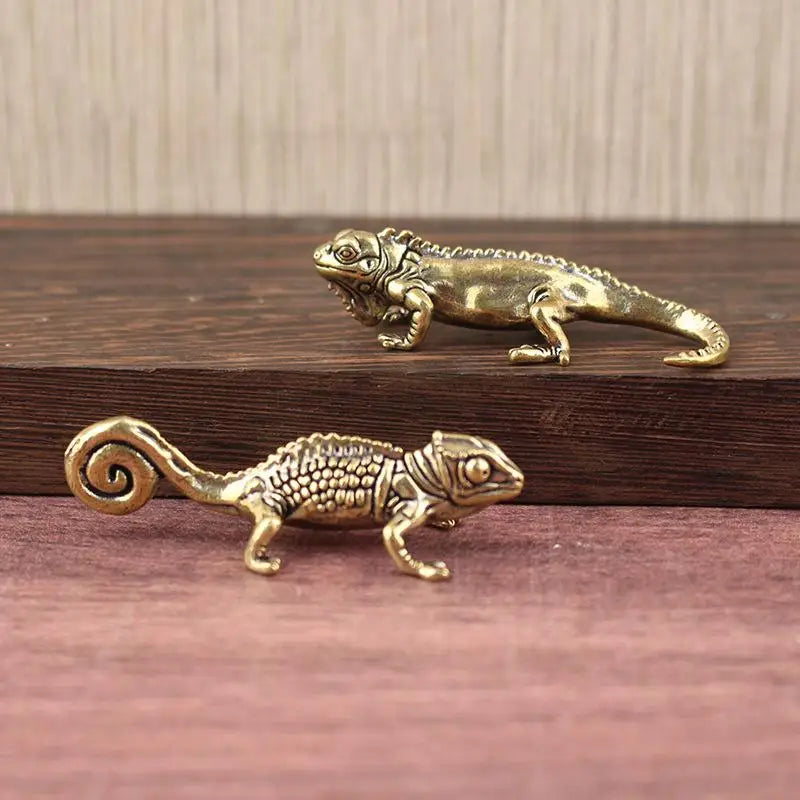 1PC Gecko Figure Home Decor Small Ornaments Antique Brass Animal Figurines Tea Pet Desk Decorations Home Decor Accessories