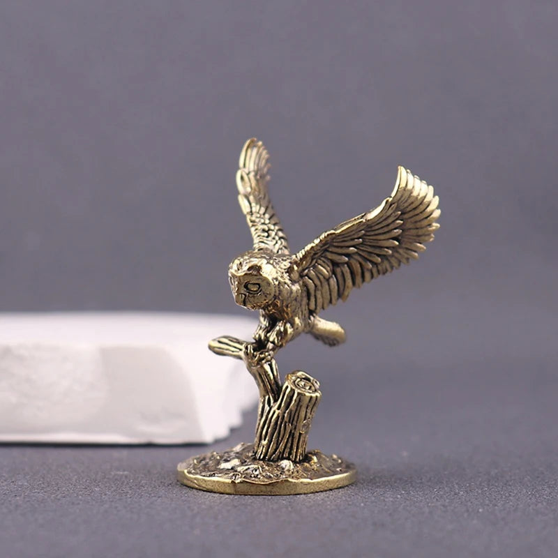 1Pcs Retro Copper Animal Tea Pet Desktop Ornament Antique Solid Brass Owl Miniature Figurines Home Decor Crafts