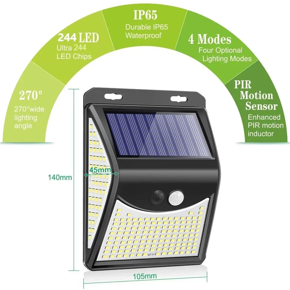 244 LED Solar Light Outdoor 4 Modes Motion Sensor PIR Wall Light Waterproof Solar Lamp Solar Powered Garden Focos Solares
