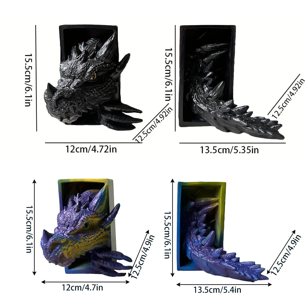 2Pc Bookshelf Decoration Dragon-Shaped Bookend, Fantasy Decoration, Home Decoration Ornaments, Bookshelf Bookend Ornaments, Dragon-Shaped Decoration in the Bookshelf.