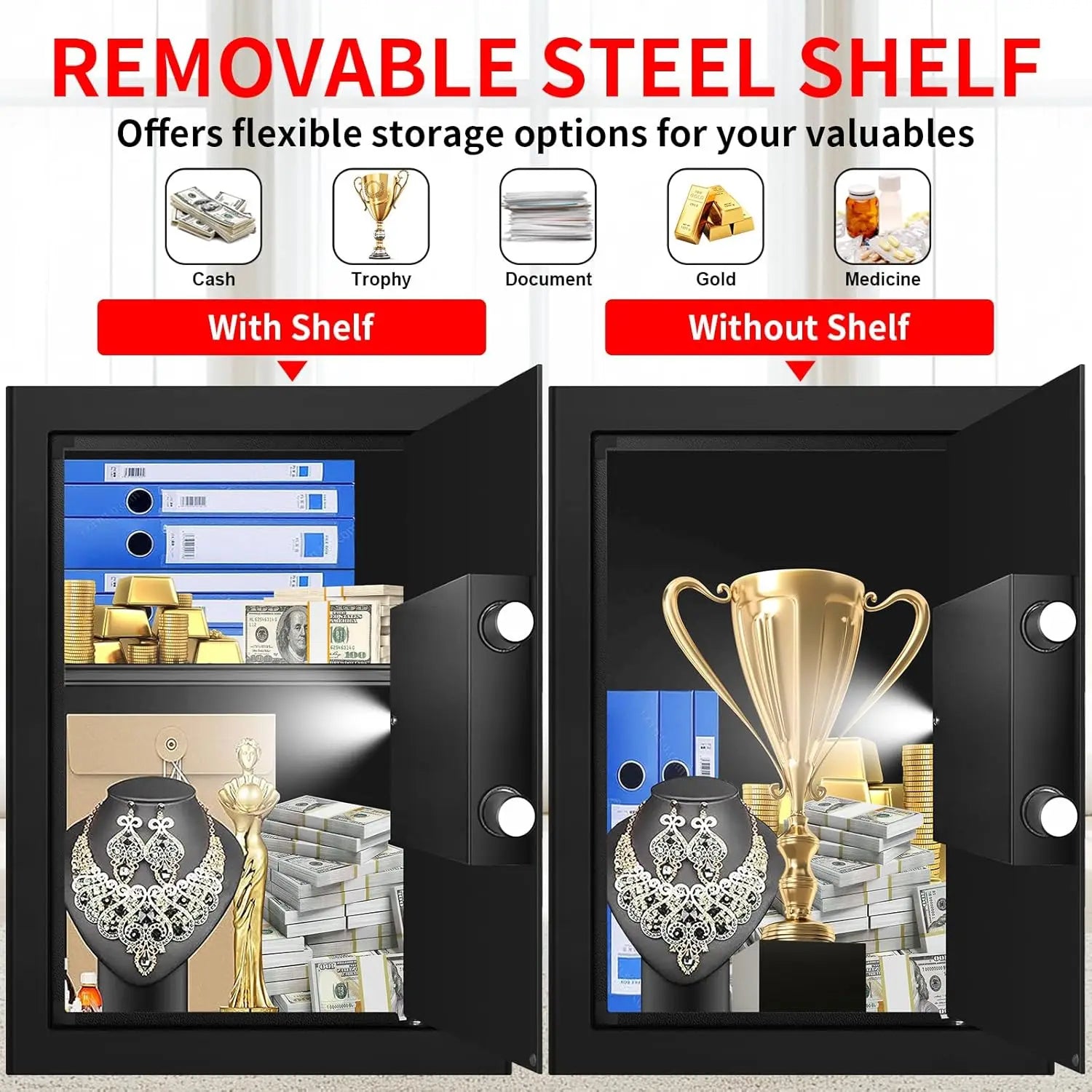 3.1 Cub Fire proof Safe for Home Documents, Anti-theft Fireproof Safe Box with Programmable Keypad, Spare Keys and Removable She