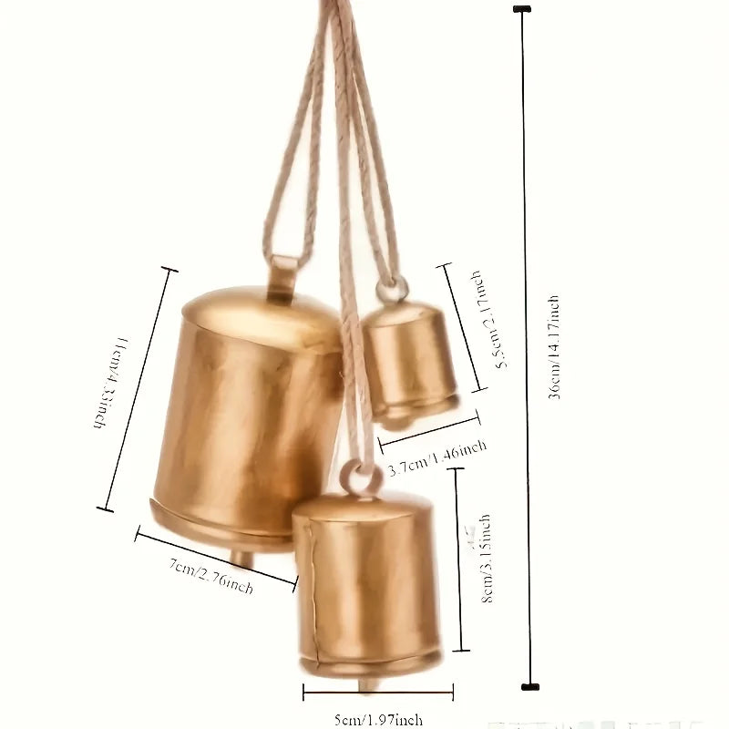3pcs Handcrafted-Look Antique Golden Metal Christmas Bells - Rustic Farmhouse Vintage Cow Bells for Xmas, Thanksgiving & Year