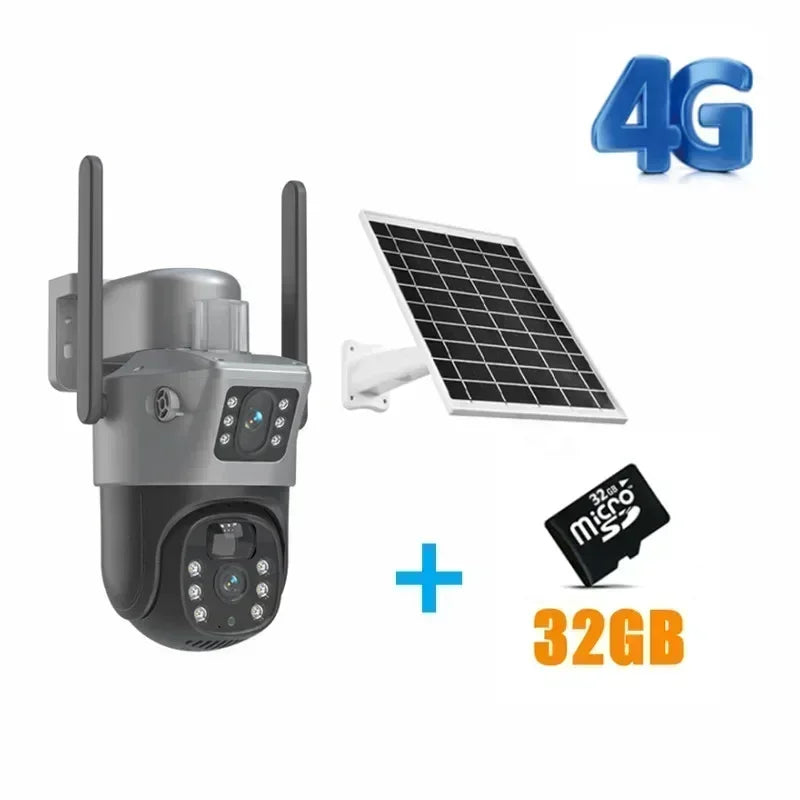 4K 8MP Dual Lens Solar Security Camera Outdoor WiFi 4G Wireless CCTV Surveillance IP Cam for SIM Card Waterproof Night Vision