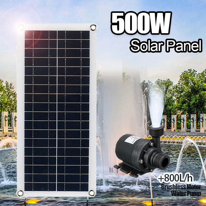500W 800L/H Solar Panel Power Bank WaterPump Set Ultra-quiet Submersible Water Pump Motory Fish Pond Garden Fountain Decoration