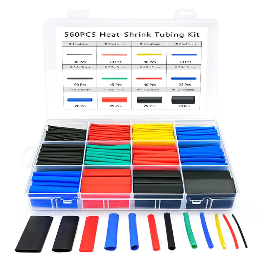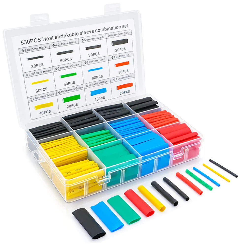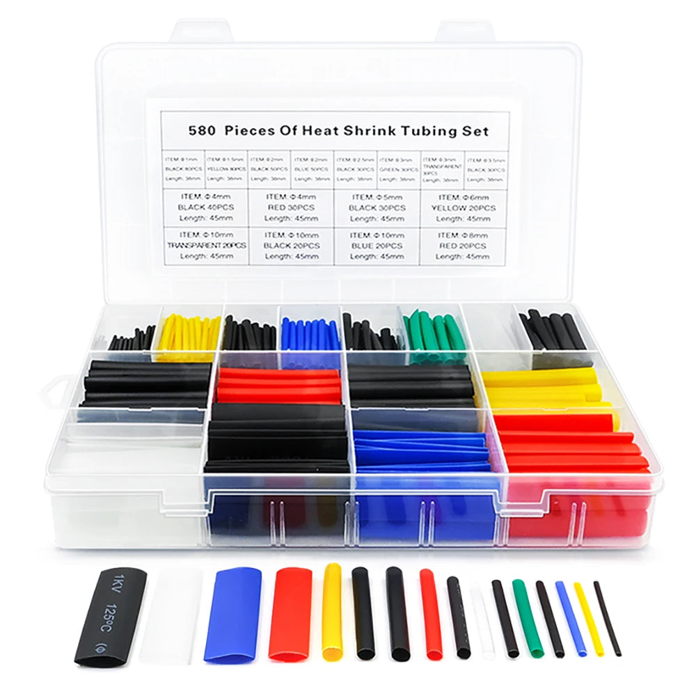 530-580pcs Heat Shrink Tube 2:1 Thermoresistant Tubing Heat Shrink Wrapping Kit Electrical Wire Cable Insulation Sleeving 1 Set