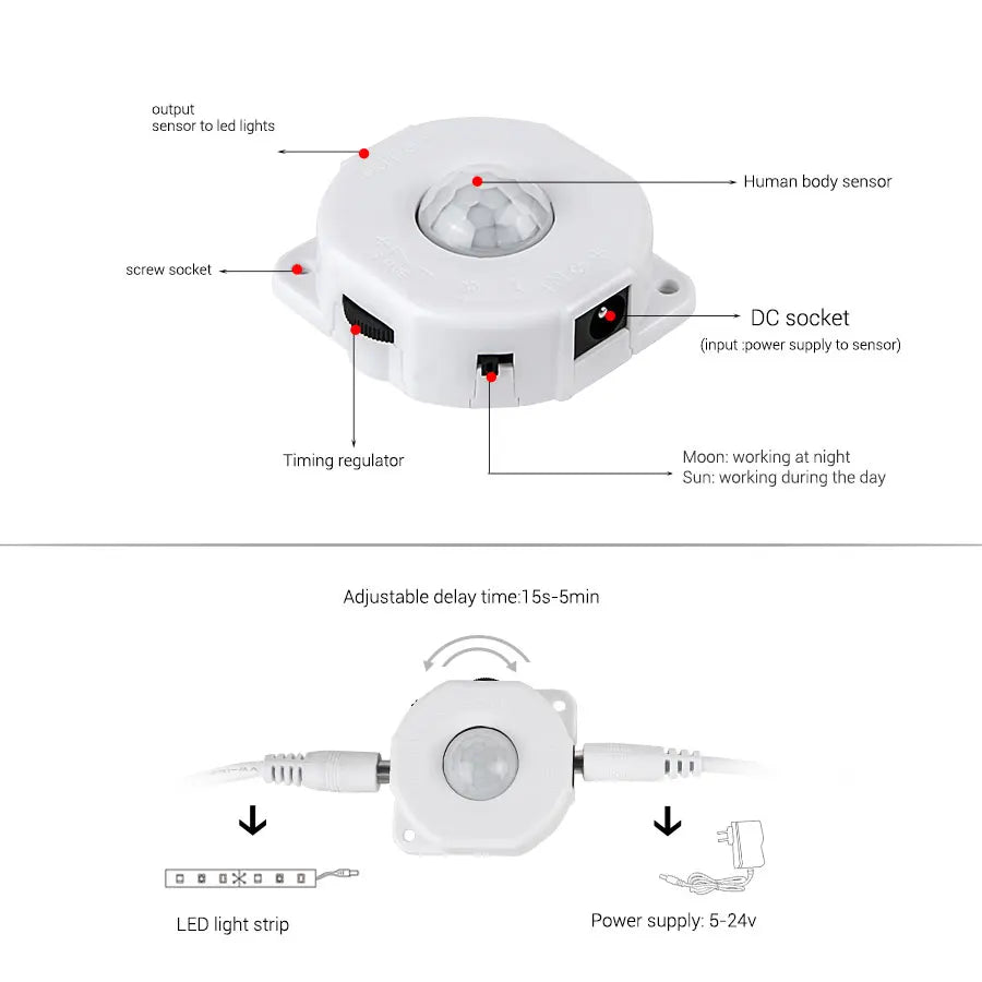 5V 12V 24V Human Body Sensor PIR Motion Movement Detector Activated Switch Automatic ON OFF Home Corridor LED Light Switch