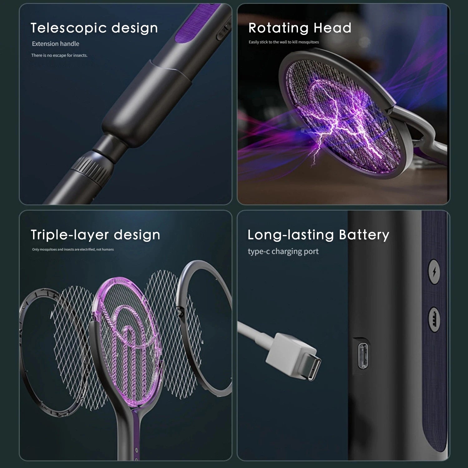 6 in 1 Retractable Mosquito Killer Swatter Racket Electric Fly Trap Bug Lamp Bat for Home House Zapper Insect Extendable Handle