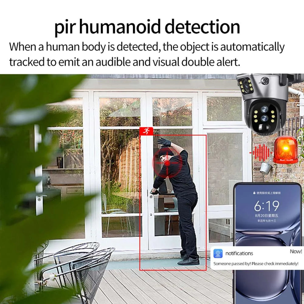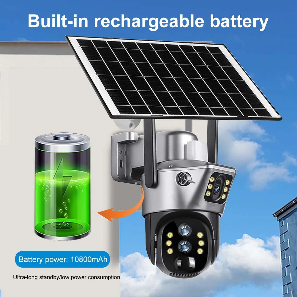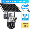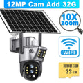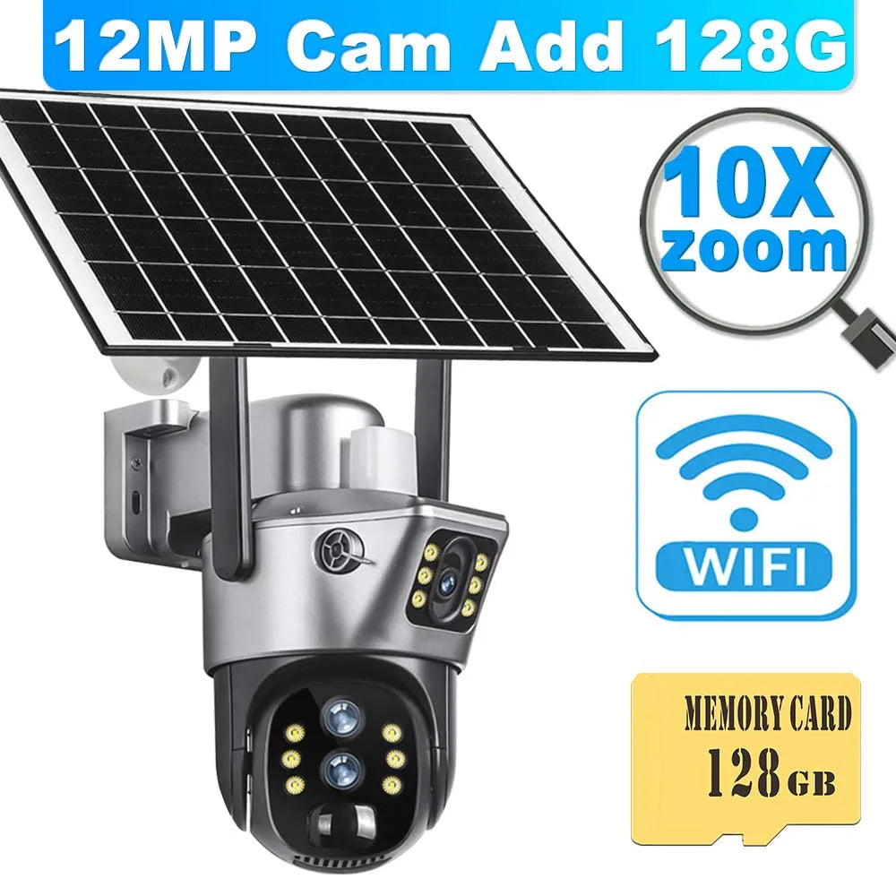 6K 12MP WiFi Solar Camera 10X Zoom Three Lens Outdoor PTZ Video Surveillance Human Detection Security Protection Smart CCTV Cam