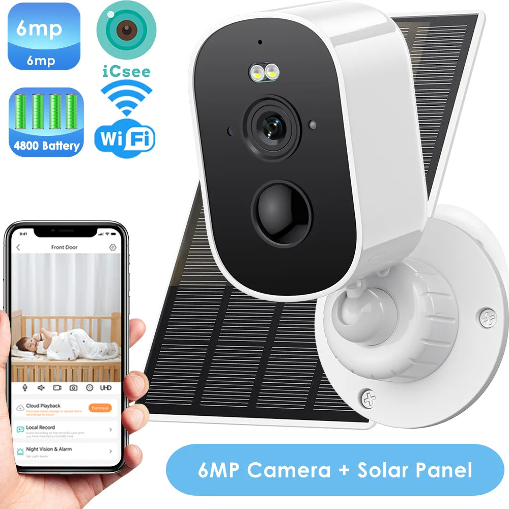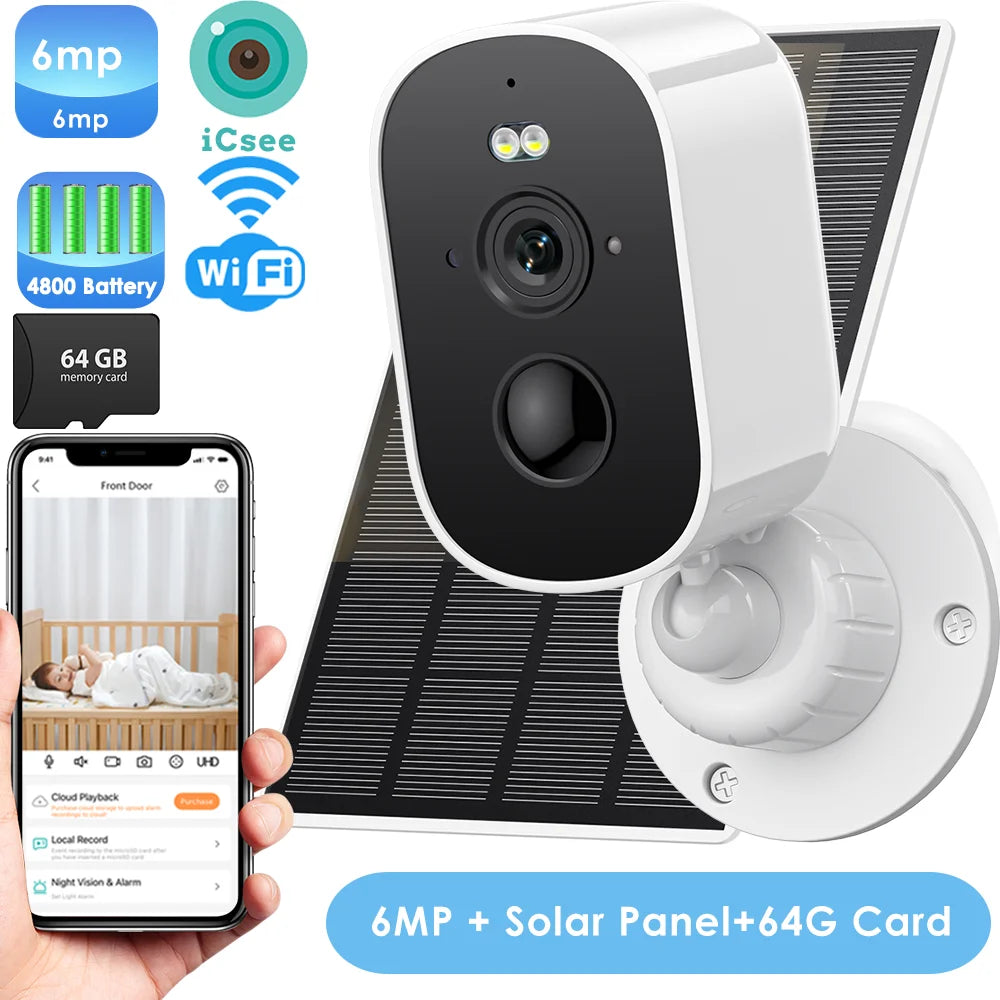 6MP Outdoor Solar Camera PZT IP 3K HD Wireless WiFi Camera 4800mAh Battery PIR Motion Alarm Color Night Vision CCTV Camera ICSEE