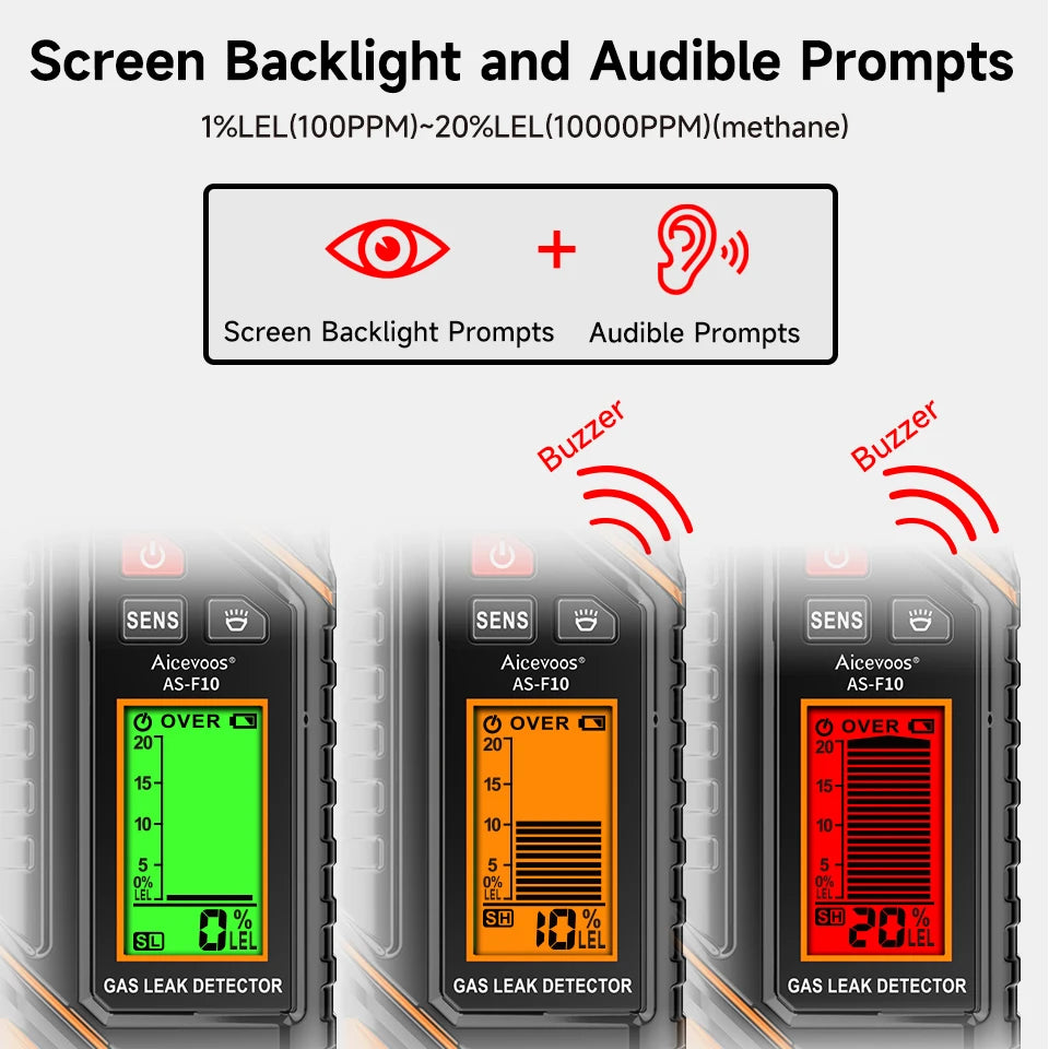 Aicevoos Rechargeable Digital Display Combustible Gas Leak Detector Gas Alarm High-Sensitivity Natural Gas Tester Methane