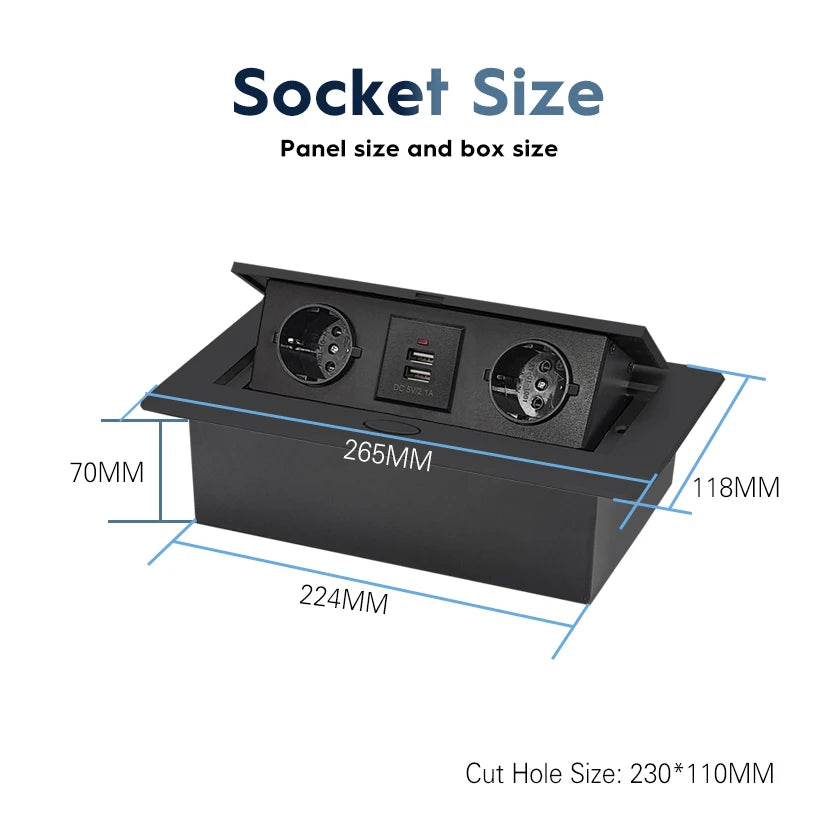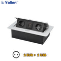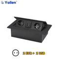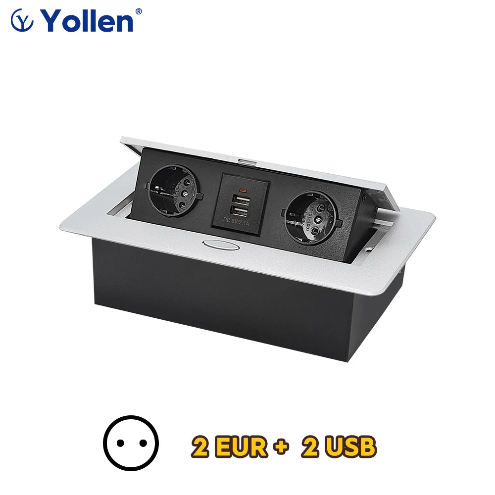 All Aluminum Panel EU Standard Hidden Type Table Socket 3 Way Electrical Outlet Modular Combination Power Three Outlet Household