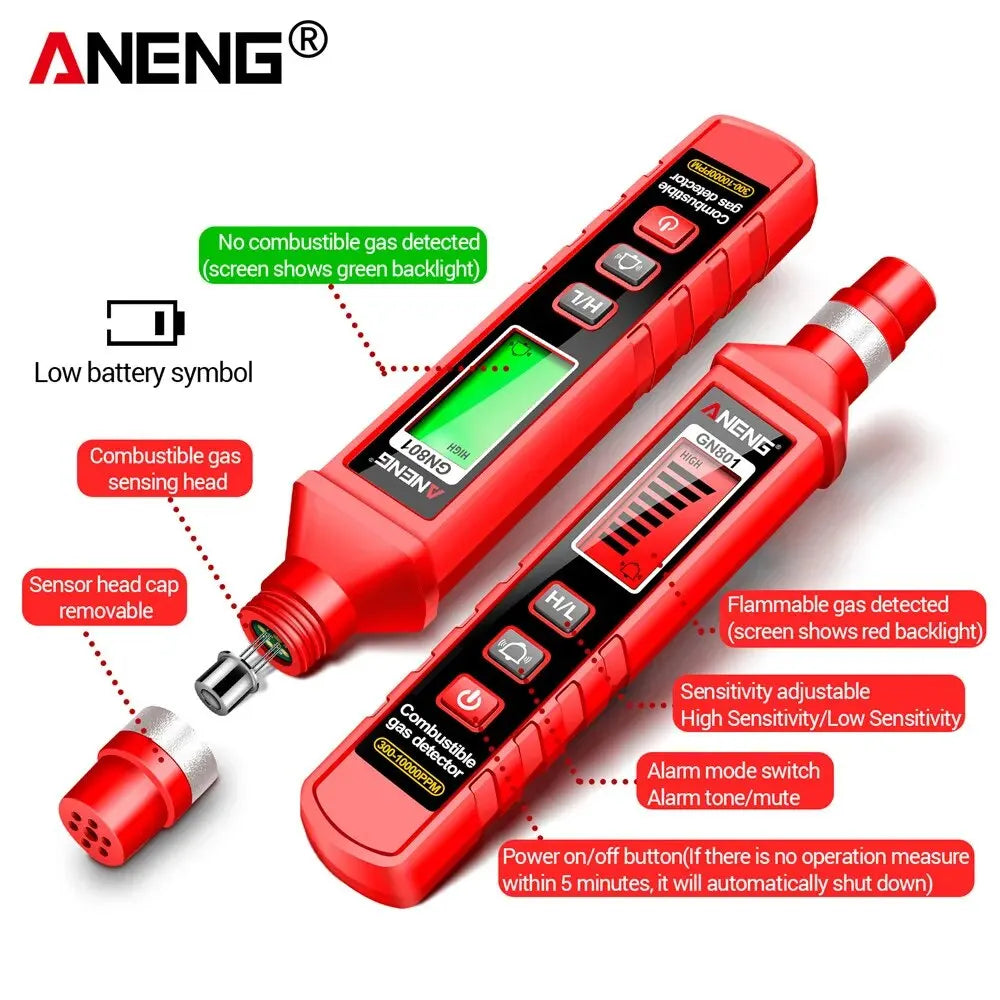 ANENG GN801 Gas-sensitive Semi-conduct Detector 300~10000PPM Gas Leakage Analyzer Combustible Meter Environment Test Sensor Tool