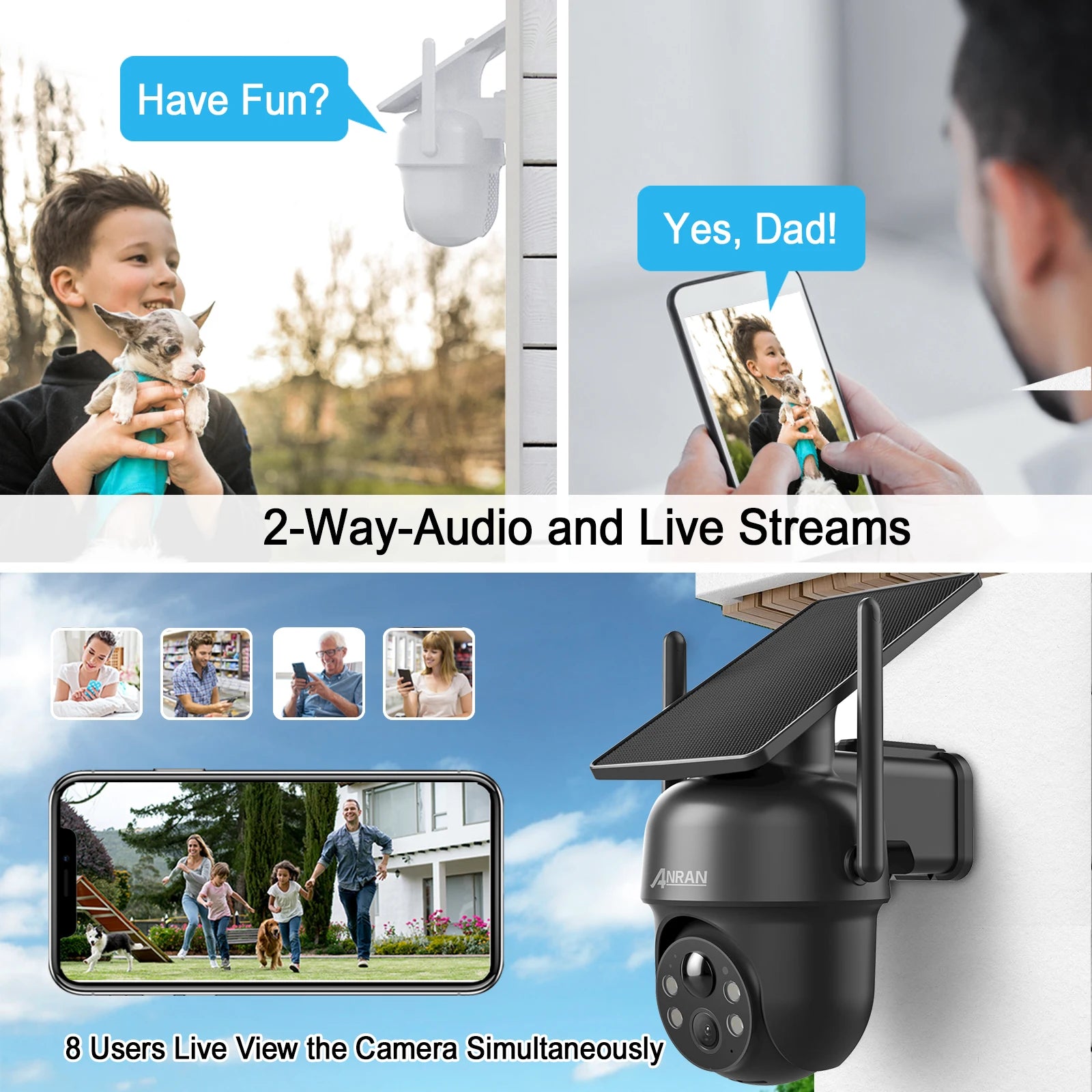 ANRAN 5MP Solar Surveillance Camera Wifi Security Camera Outdoor Wireless Flash Spotlight IP66 Waterproof Smooth Two Way Audio