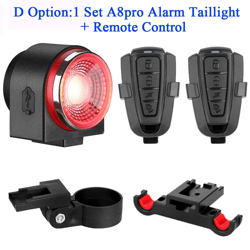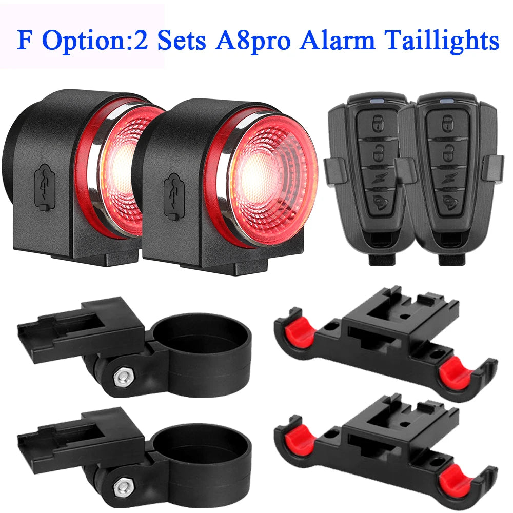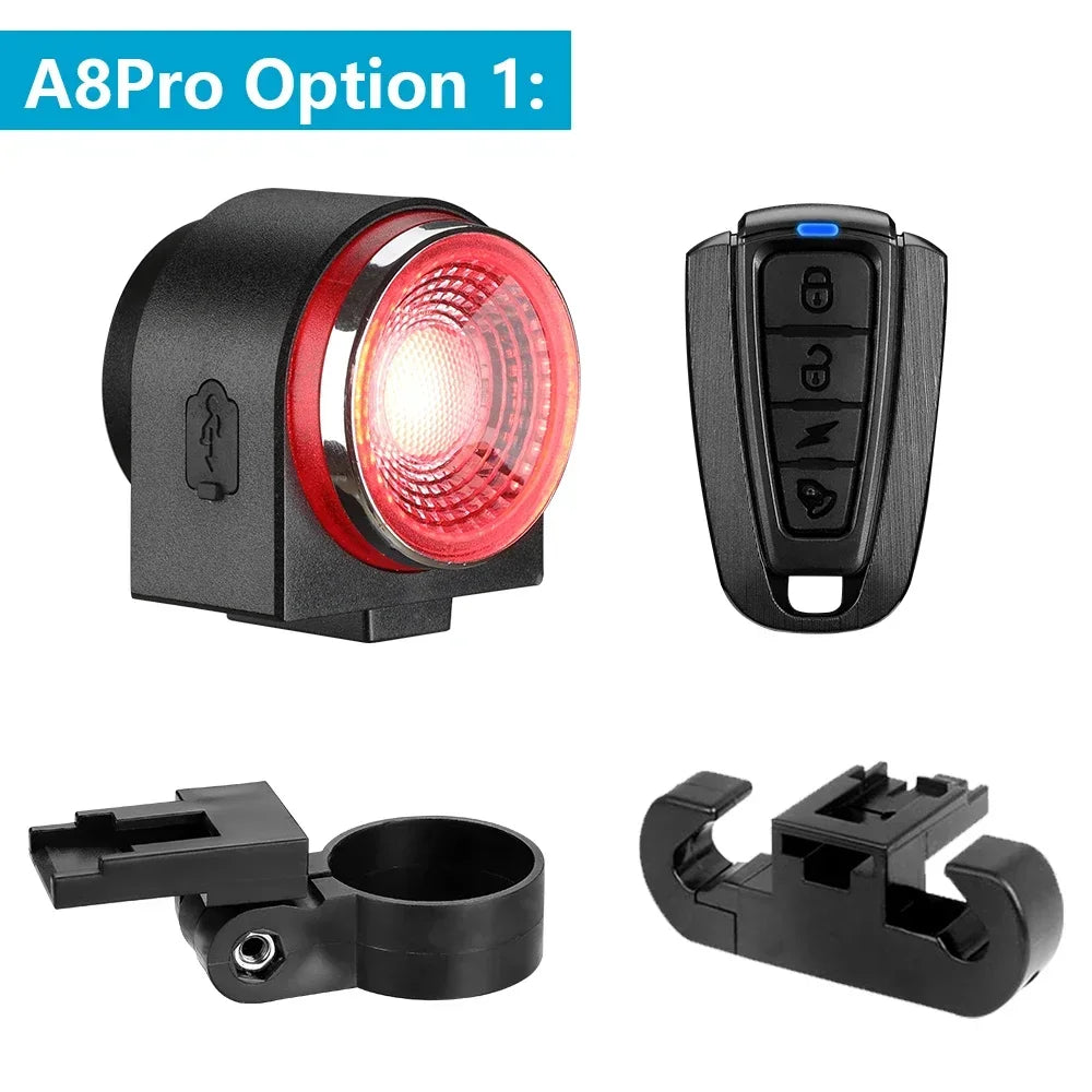 ANTUSI A8pro Bike Anti-theft Alarm Lock Auto Brake Cycling Taillight Remote Control Waterproof Bicycle Rear Light Wireless Bell