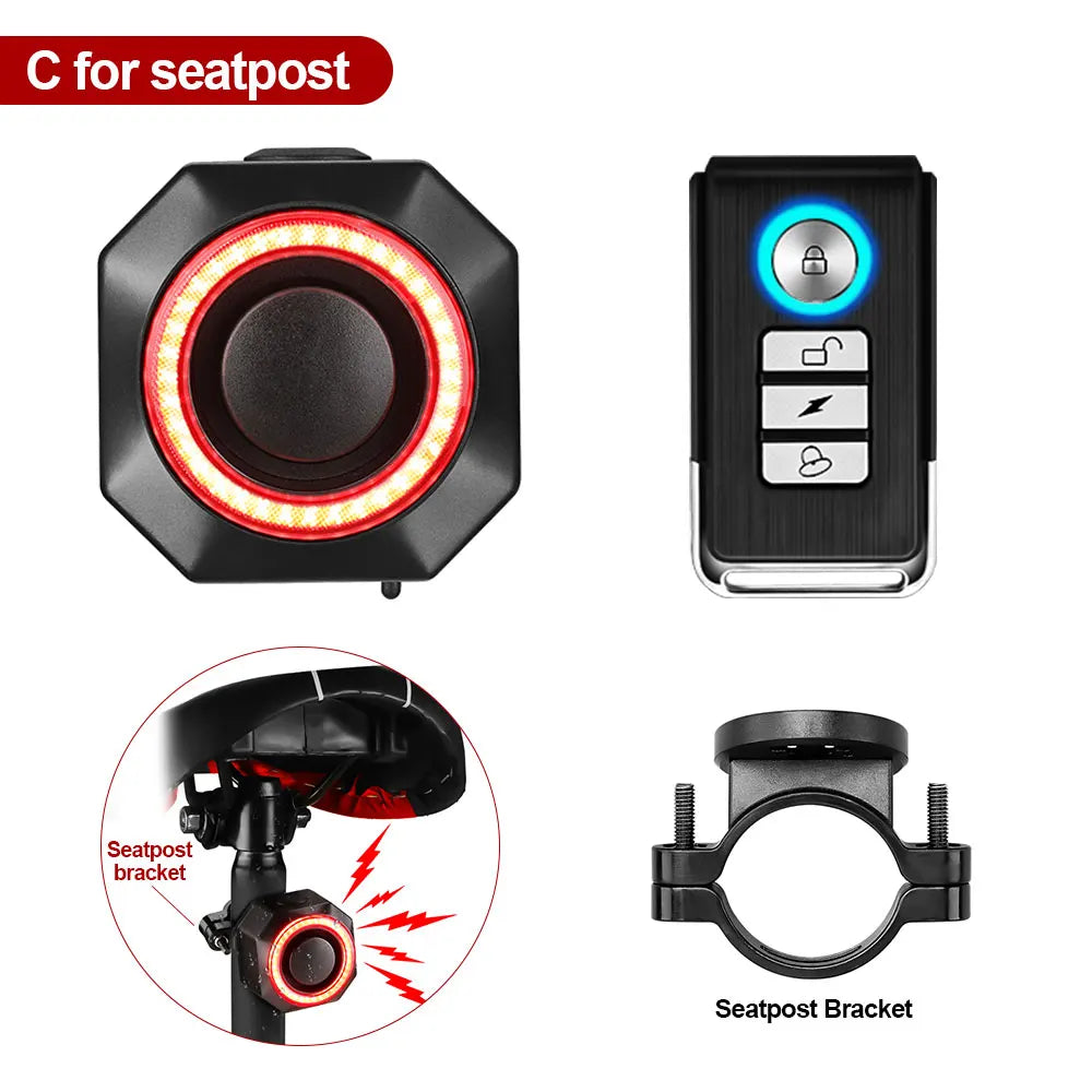 Awapow Bicycle Alarm Remote Control Bike Anti Theft Alarm USB Rechargeable 110dB Motorcycle Bicycle Detector Alarm With Bracket