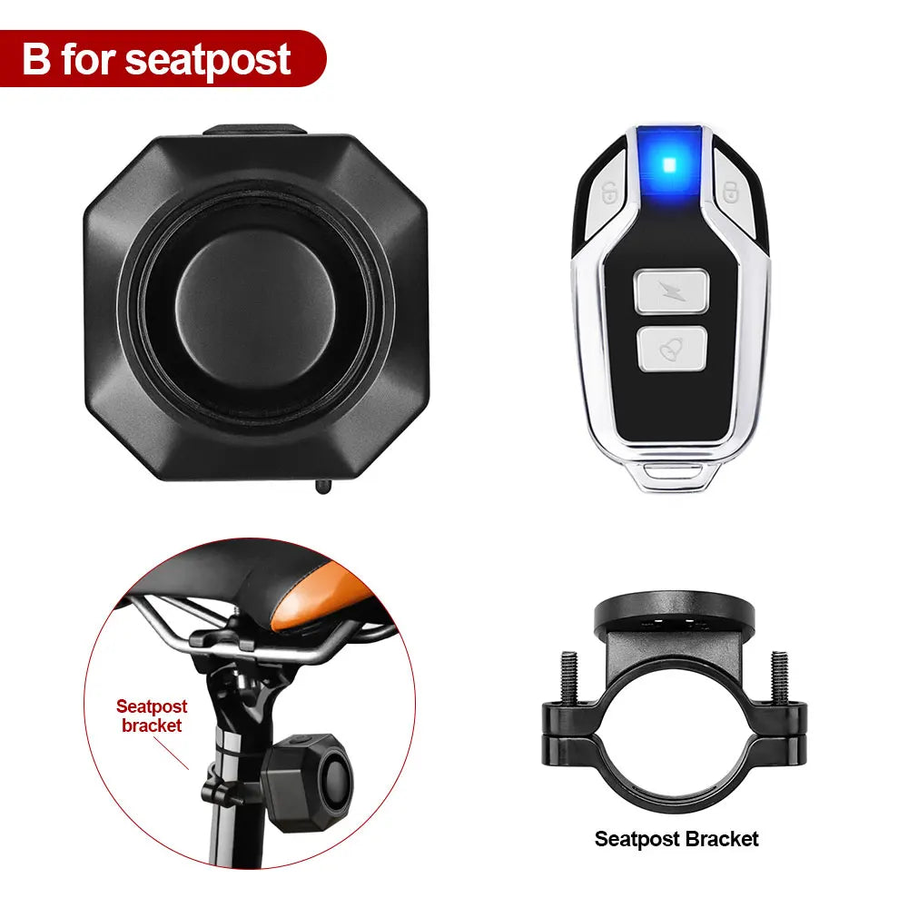 Awapow Bicycle Alarm Remote Control Bike Anti Theft Alarm USB Rechargeable 110dB Motorcycle Bicycle Detector Alarm With Bracket