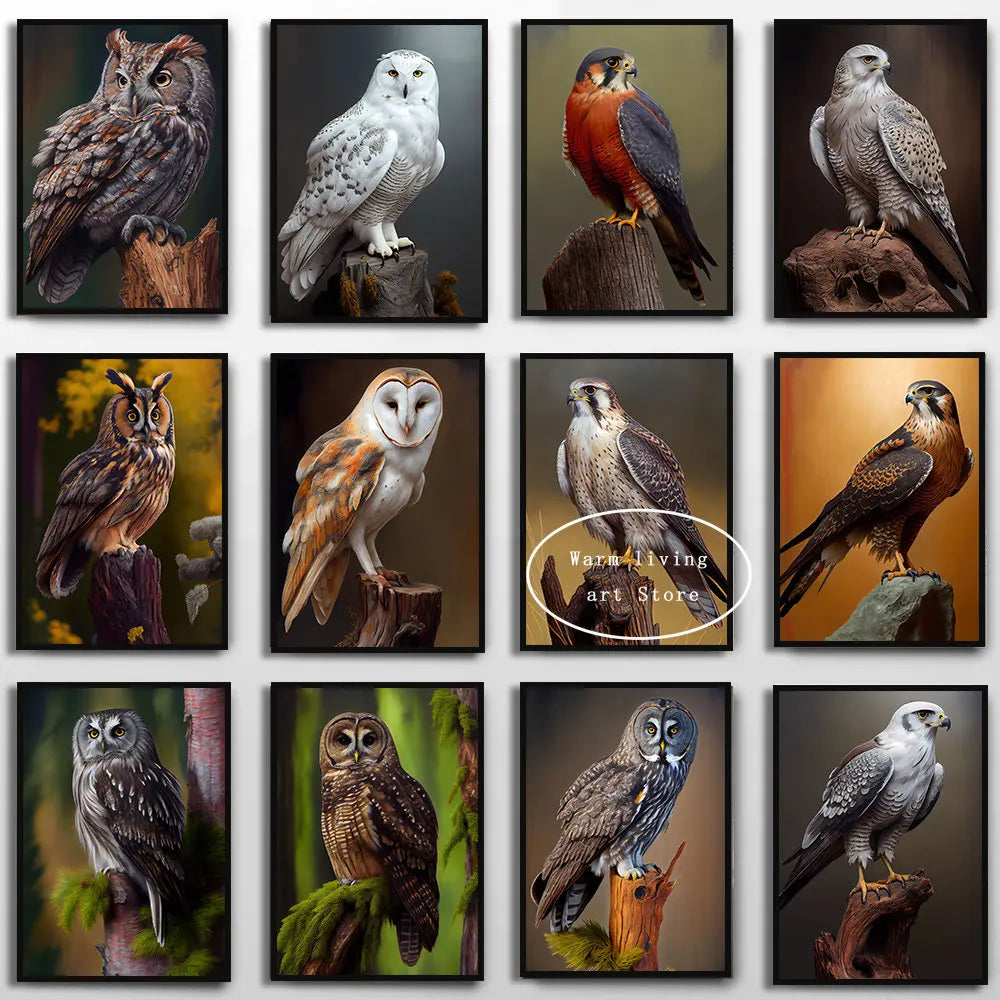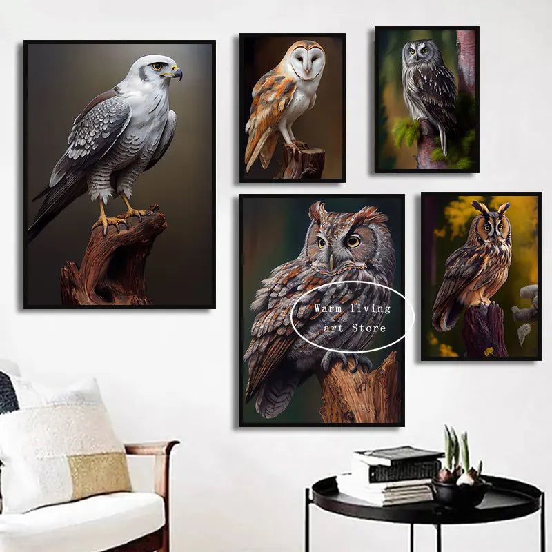 Barn Owl Longeared Owl Snowy Owl Poster Peregrine Falcon Prairie Falcon Canvas Painting Modern Animal Art Picture Home Decor