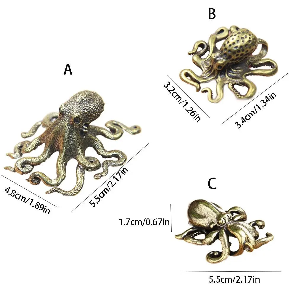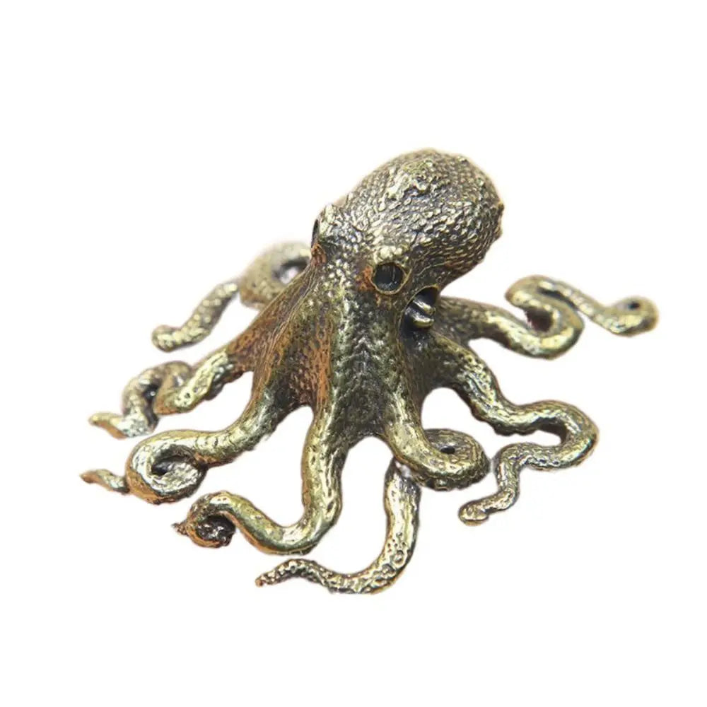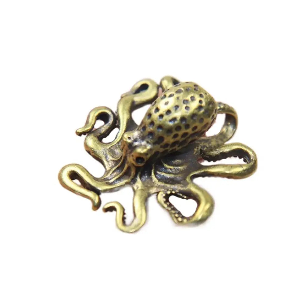 Brass Octopus Home Decoration Antique Copper Animal Figurines Miniatures Desk Ornament Accessories Creative Table Tea Pets Craft