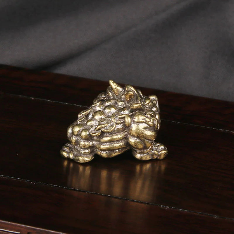Brass Three Legged Golden Toad Desktop Ornament Toad Bronze Carving Craft Ornament Study Room Paperweight and Cultural Play