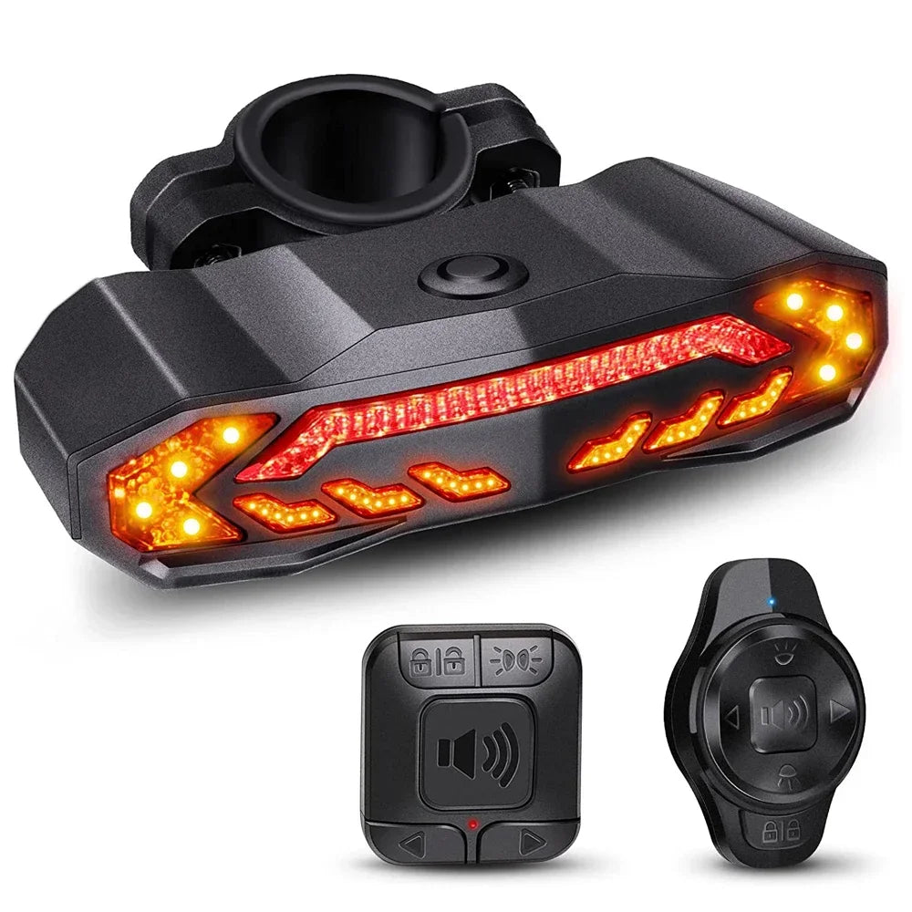 Camluxy Bike Motorcycle Taillight Alarm Brake Light with Turn Signals Horn Wireless Waterproof Remote Control Bicycle Rear Light