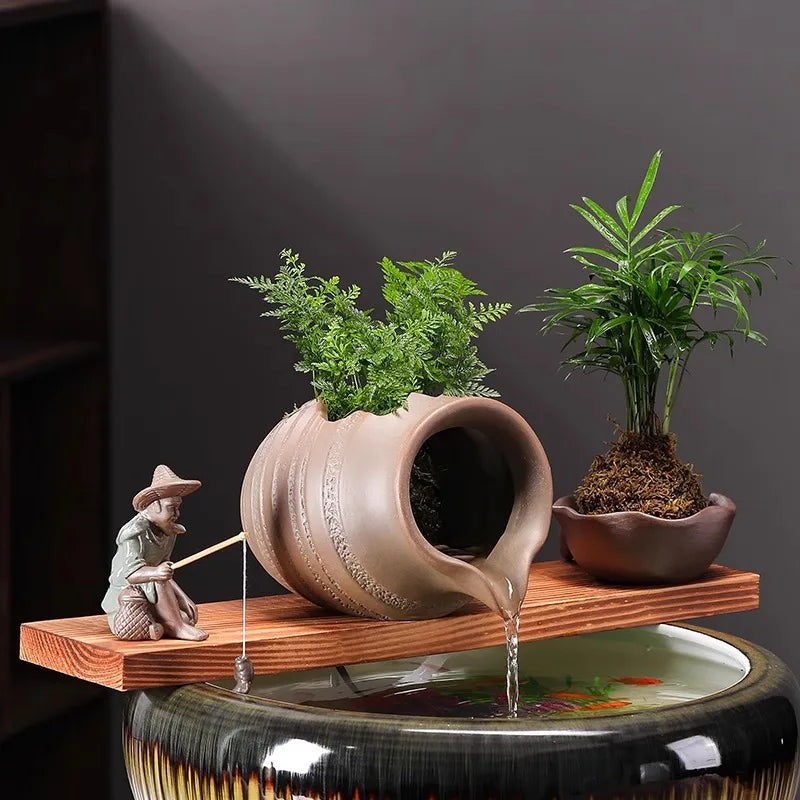 Ceramic Waterfall Jug - Circulating Clay Pot Fountain for Garden, Fish Tank & Courtyard Decor | Handmade Rustic Water Feature