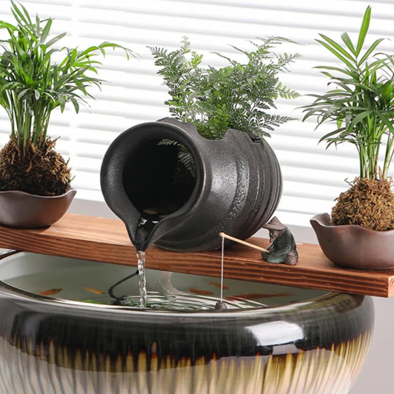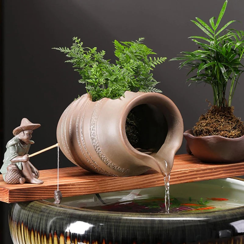 Circulating Water Clay Pot Waterfall Jar Courtyard Fountain Fish Tank Indoor Garden Decor Ceramic Jar Outdoor Ornament Landscape